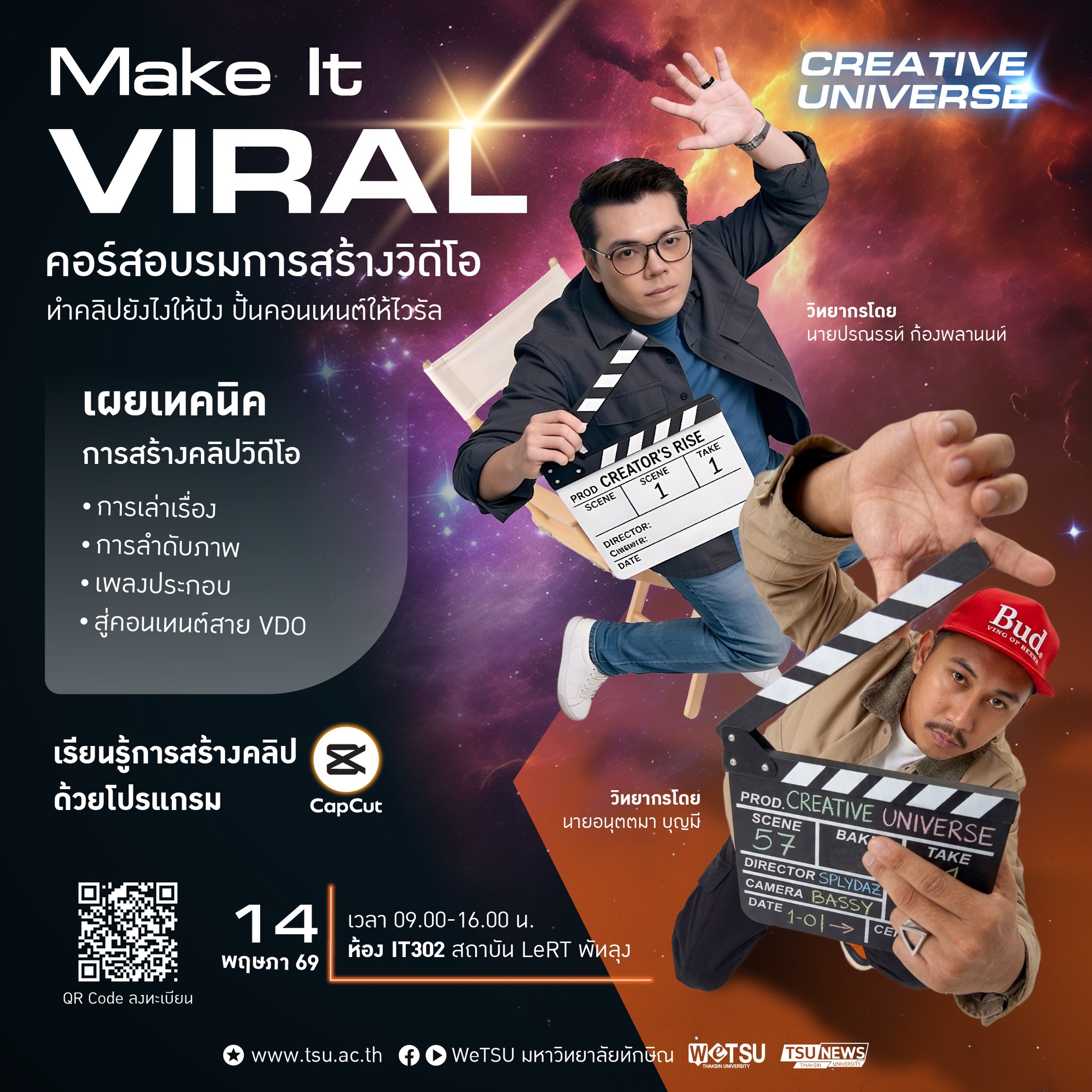 โครงการพัฒนาศักยภาพนักสื่อสารองค์กรเชิงรุก หลักสูตร หลักสูตร Make It Viral ทำคลิปยังไงให้ป...