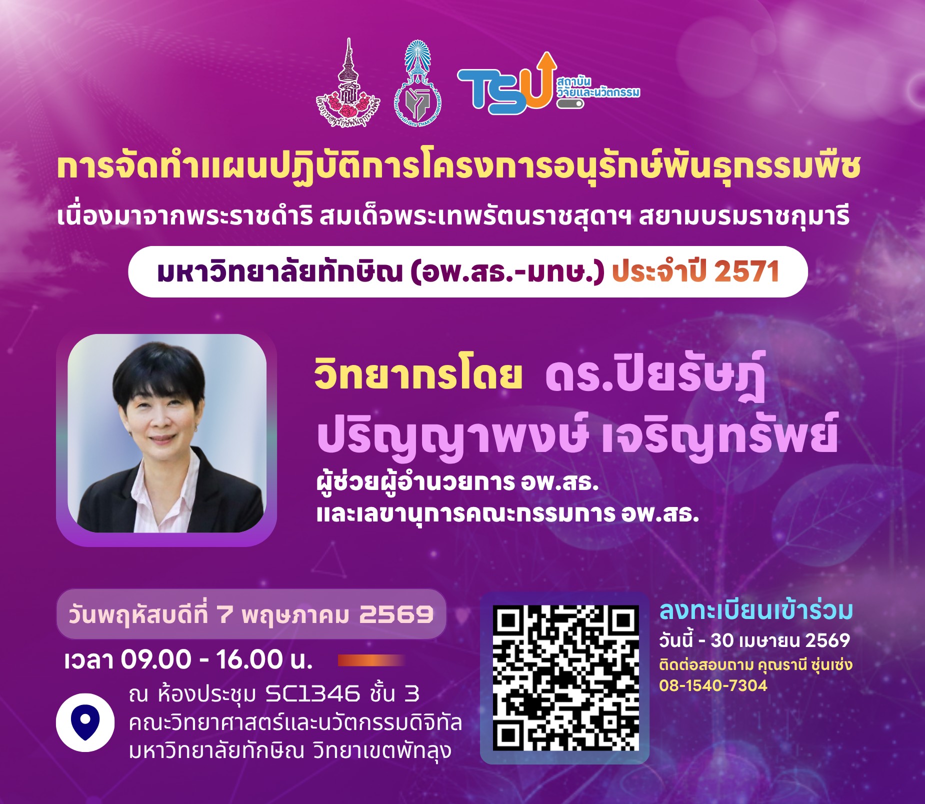 การจัดทำแผนปฏิบัติการโครงการอนุรักษ์พันธุกรรมพืชฯ มหาวิทยาลัยทักษิณ (อพ.สธ.-มทษ.) ประจำปี ...