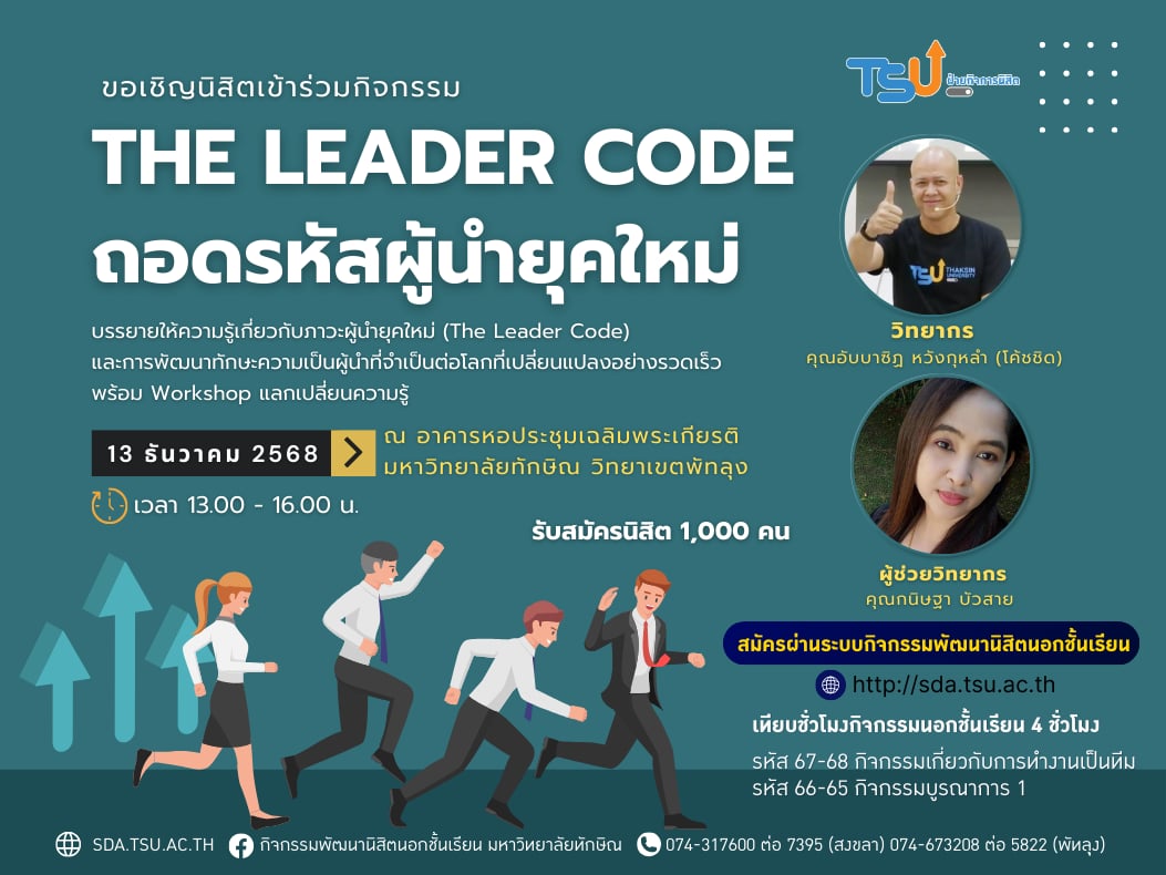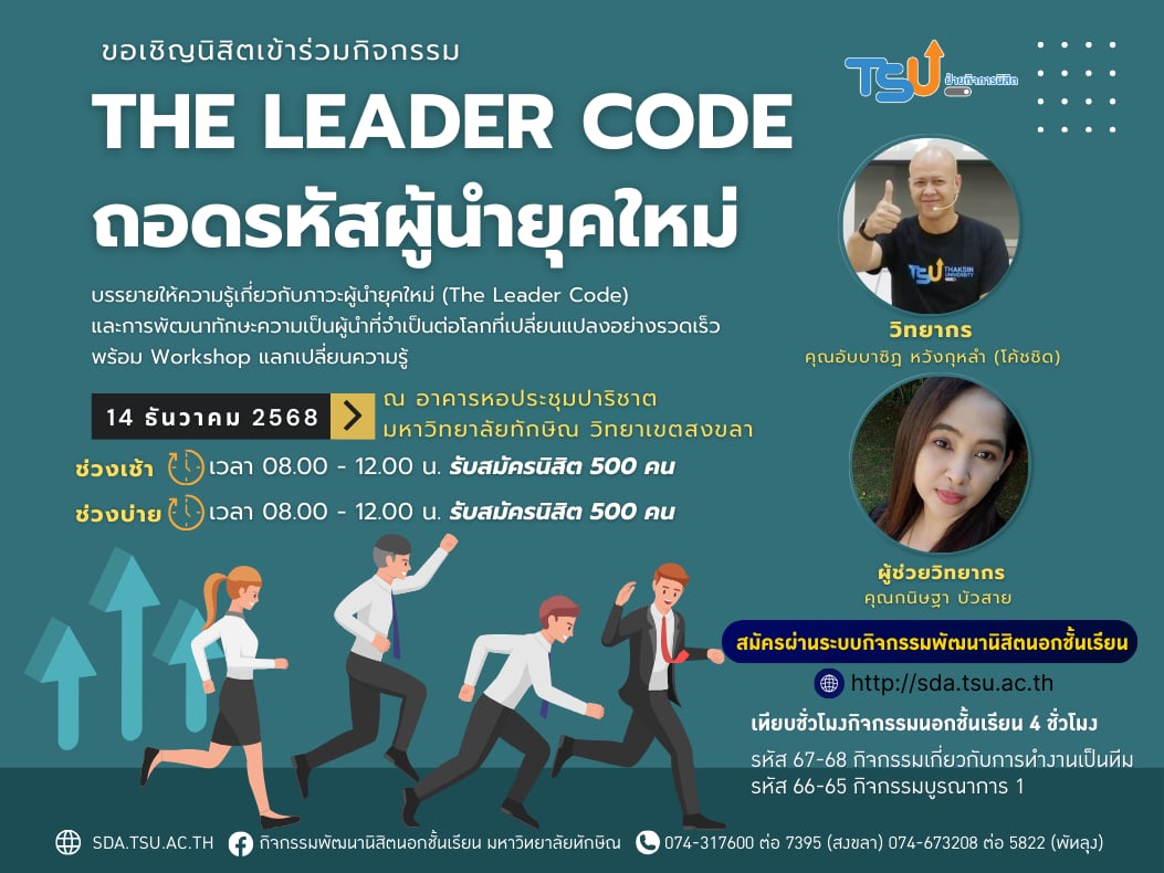 กิจกรรม The Leader Code ถอดรหัสผู้นำยุคใหม่ วิทยาเขตสงขลา...