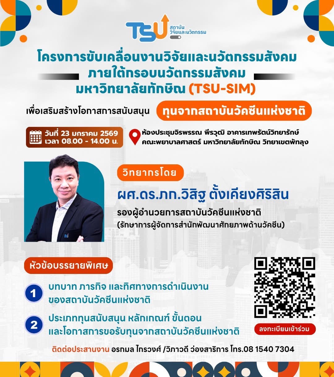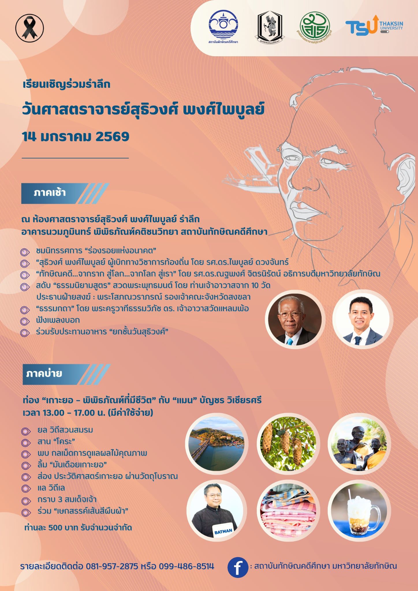 หรือติดตามผ่าน Live Facebook page คณะศิลปกรรมศาสตร์มหาวิทยาลัยทักษิณ Faculty of Fine and Applied Arts TSU