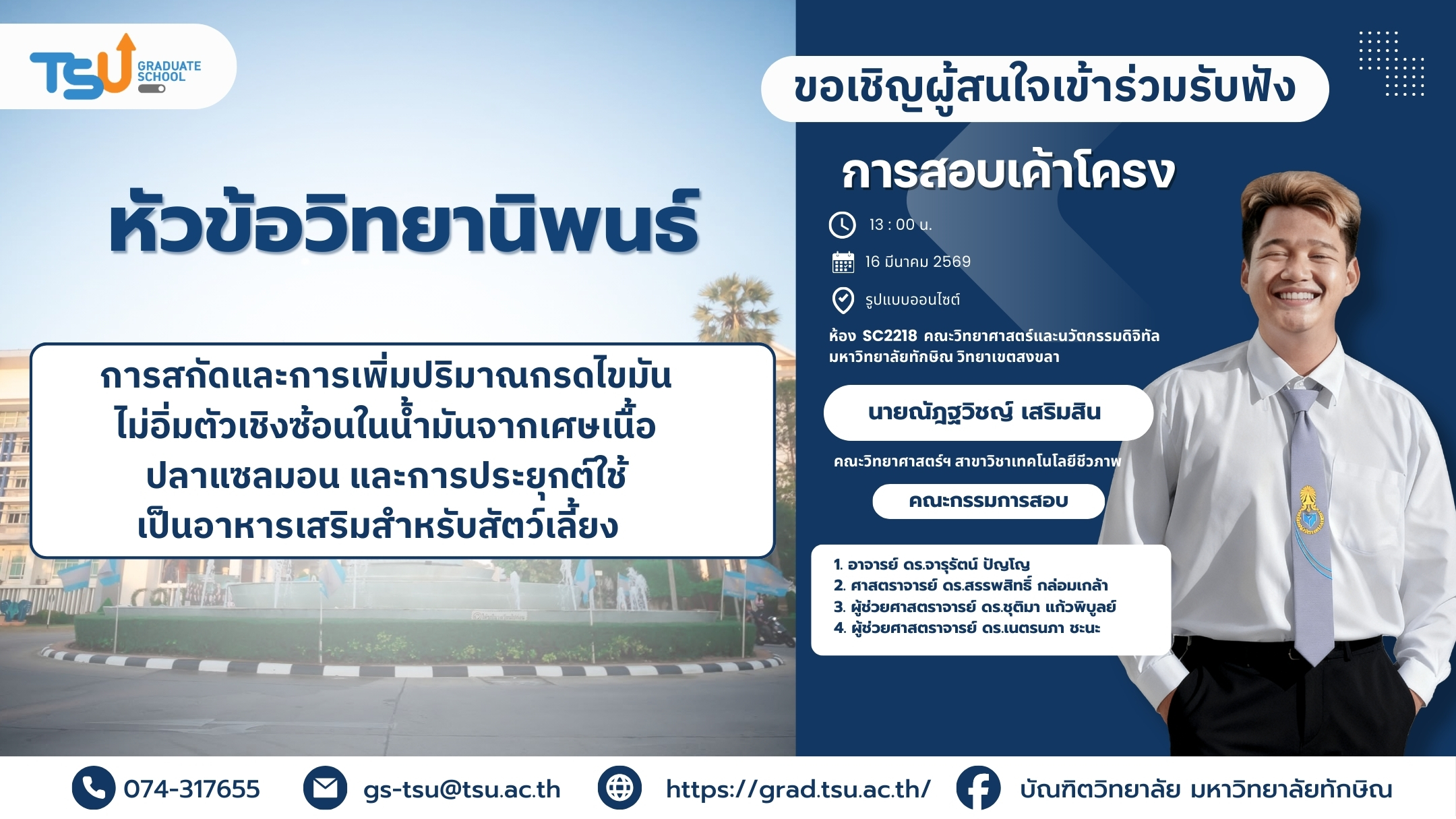 ขอเชิญผู้สนใจเข้าร่วมรับฟังการสอบเค้าโครงวิทยานิพนธ์...