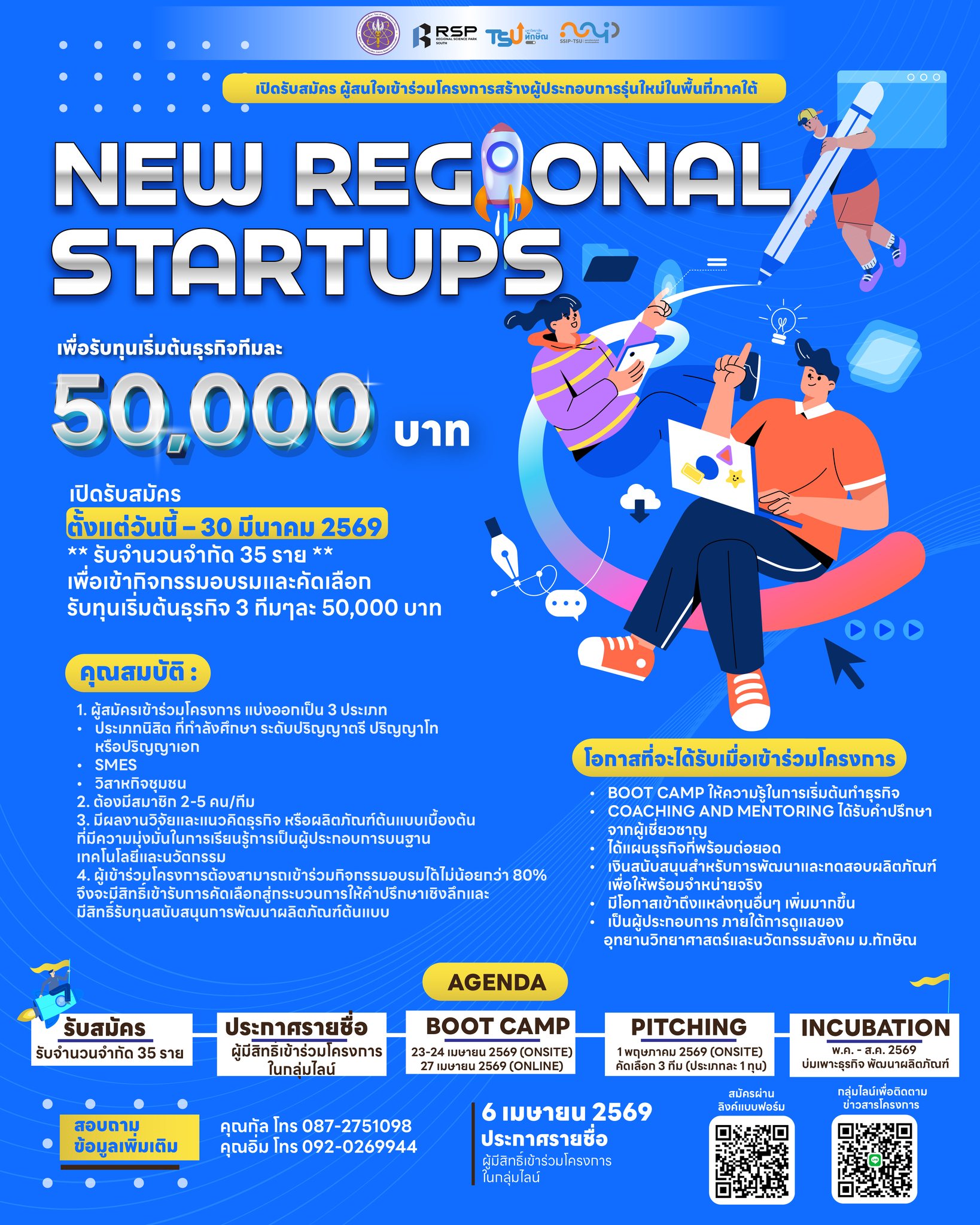 เปิดรับสมัครผู้สนใจเข้าร่วมโครงการสร้างผู้ประกอบการรุ่นใหม่ในพื้นที่ภาคใต้ New Regional St...